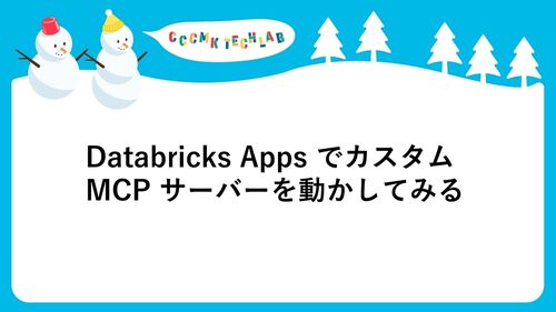 はじめに こんにちは、CCCMKホールディングスAIエンジニアの三浦です。先日東京に雪が降りました。雪が降ると、いつもの見慣れた景色が全然違って見えて不思議な気持ちになりました。 最近社内向けのアプリをDatabricks Appsで提供する、といったことに取り…