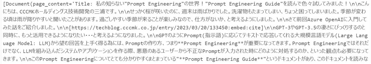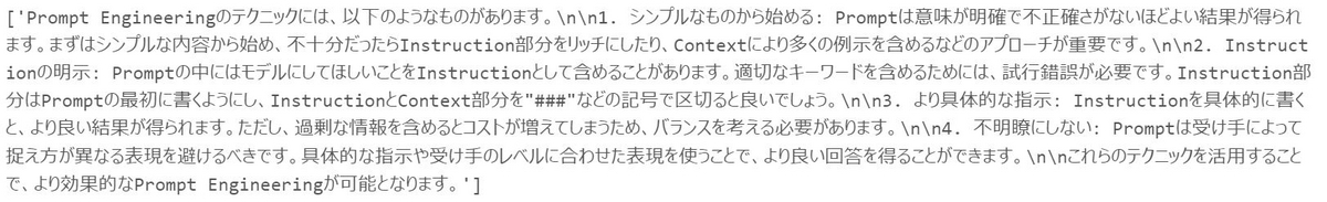 以下の様にブログ記事の中で"Prompt Engineering"に関係しそうな部分が抜き出されていることが分かります。